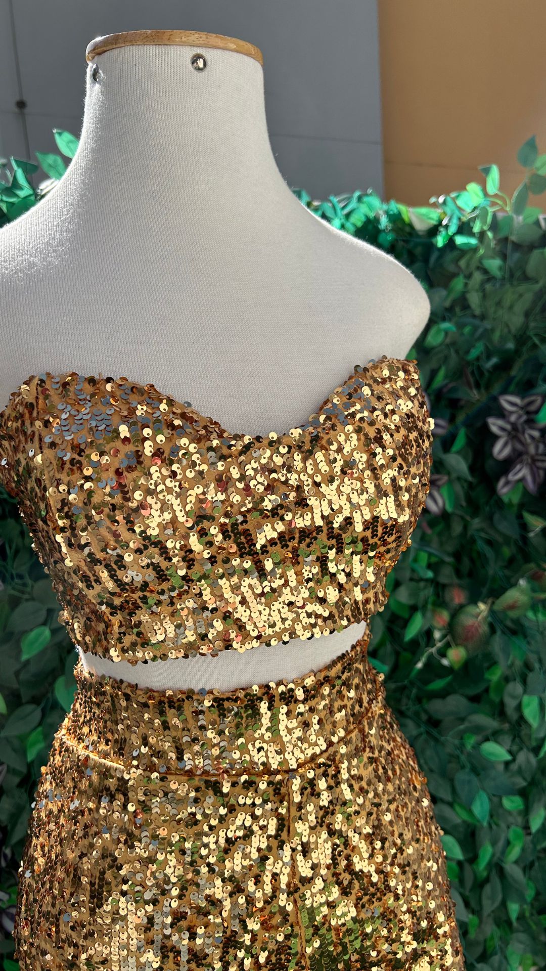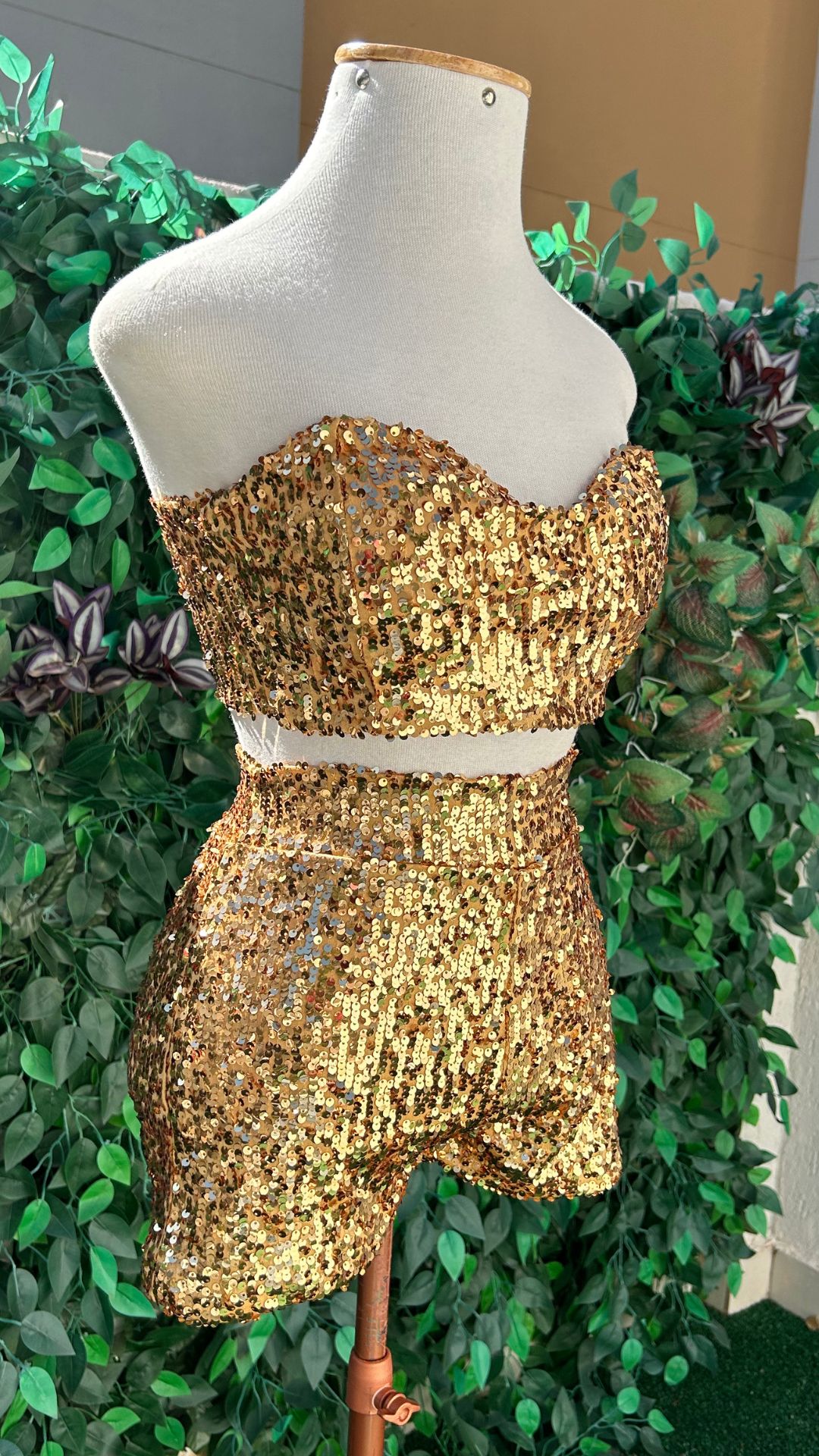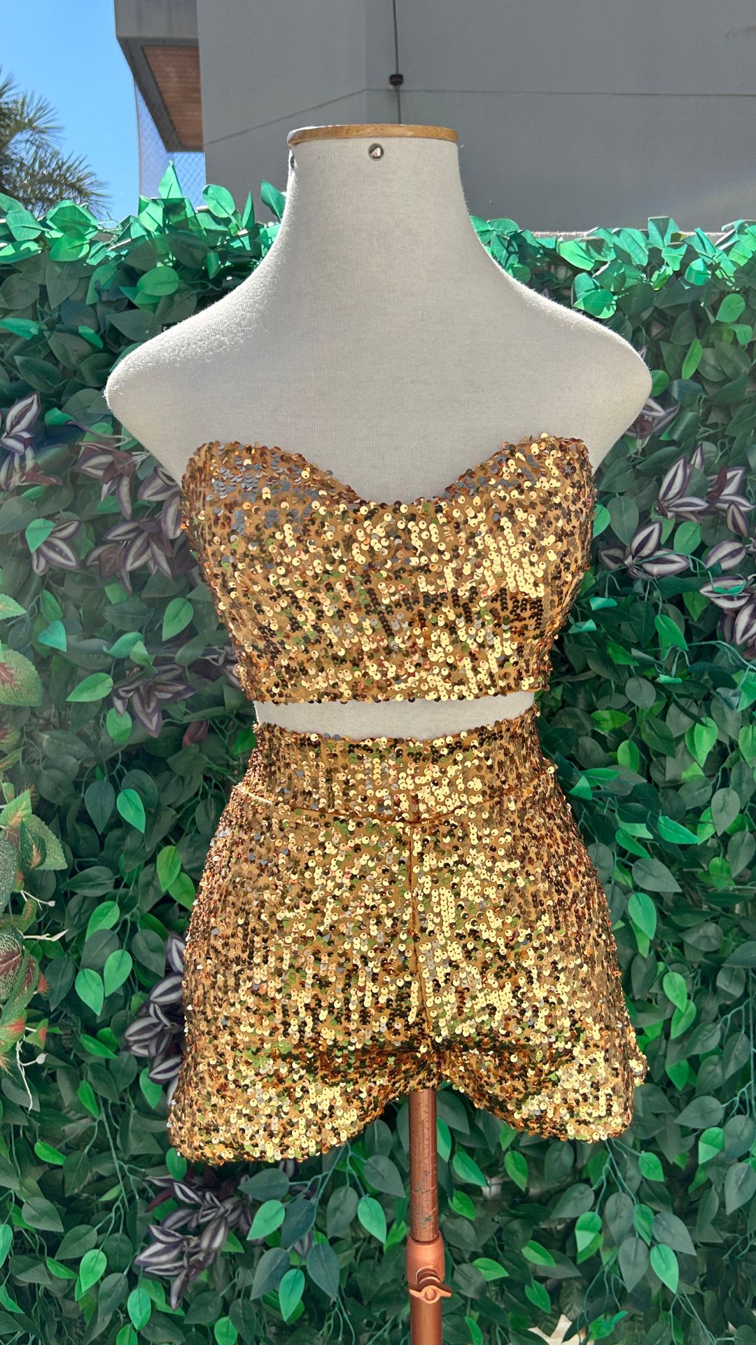 Conjunto Cropped e Short Saia Dourado com Paetês – Look Brilhante para Debutantes e Festas