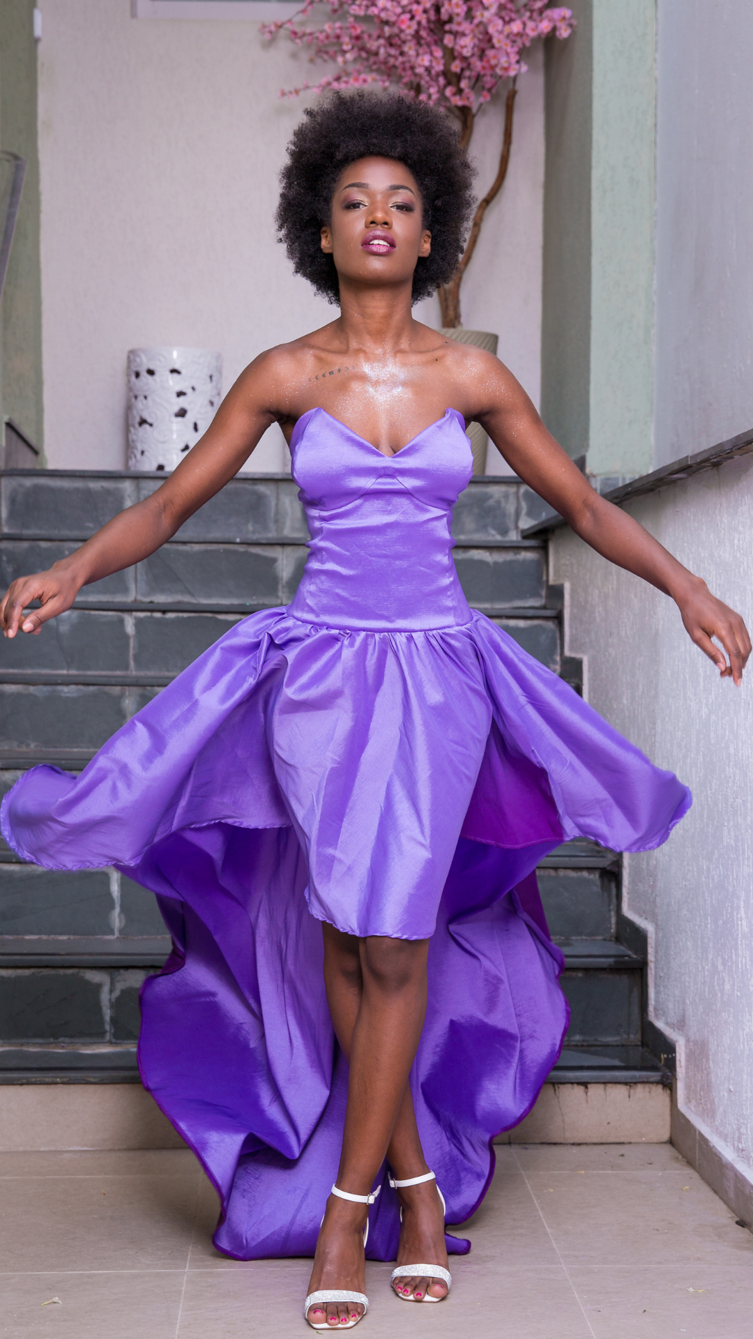 Vestido confeccionado em tafetá com acabamento leve acetinado, apresenta modelagem high low, mais curto na frente e longo atrás, ideal para criar movimento e destaque nas produções. Possui decote coração que valoriza o colo e busto, alças finas e corpete estruturado com leve drapeado no busto. A saia com volume em camadas confere sofisticação e modernidade. A peça é ideal para quem busca originalidade e leveza em ocasiões especiais.