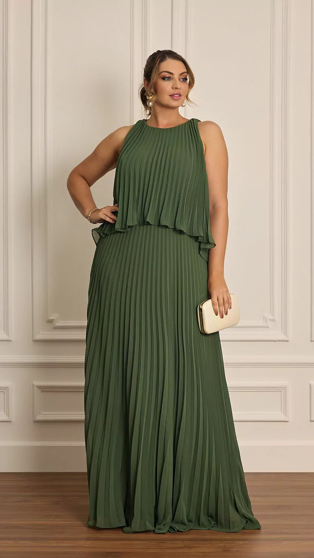 Vestido Plus Size Longo Plissado