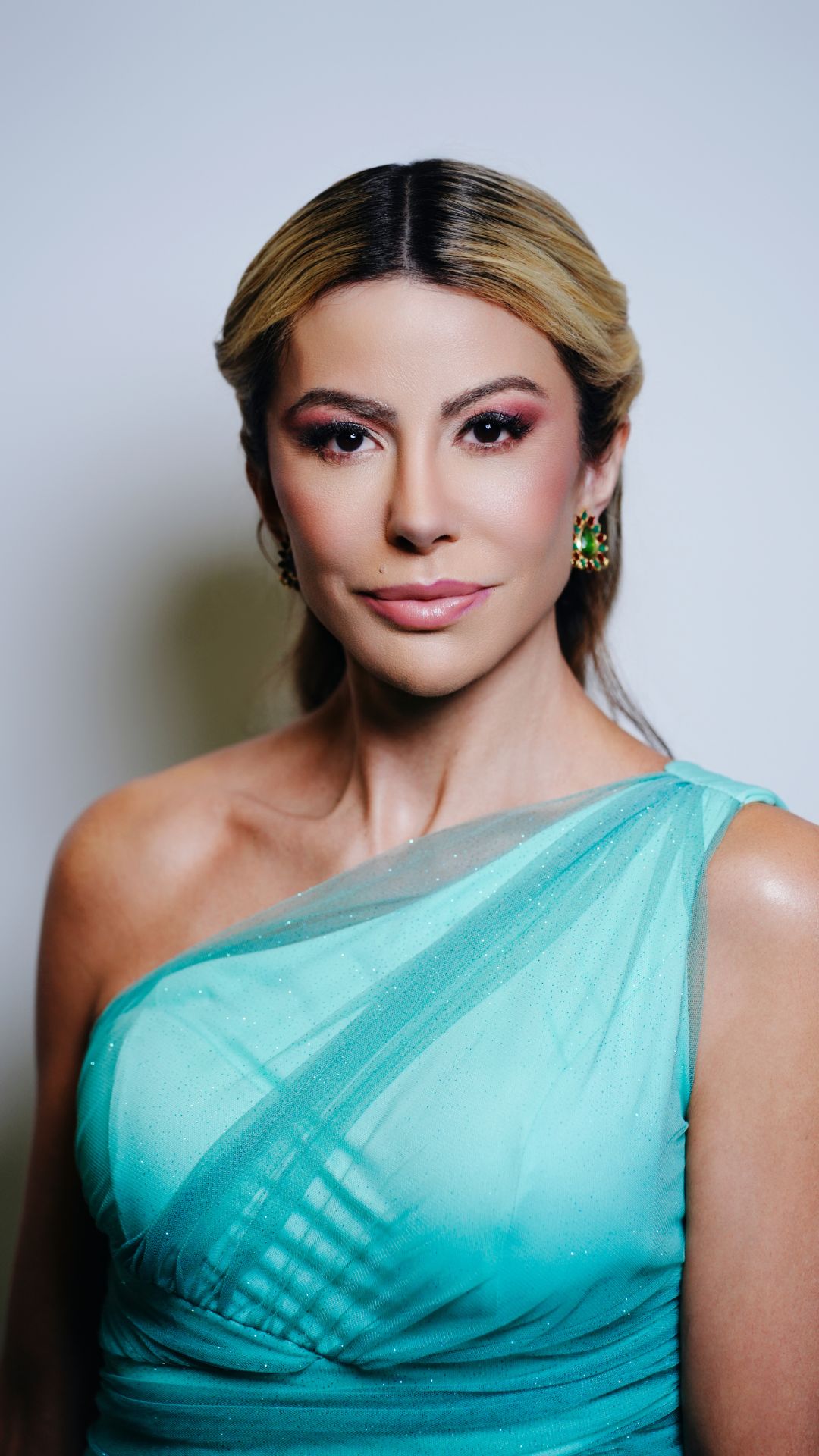 Dicas de uso: • Acessórios: brincos em pedras verdes ou cristais, pulseiras douradas delicadas, clutch em dourado ou nude. Evitar colar para valorizar o decote assimétrico. • Calçados: sandália de salto dourada, nude ou metalizada. • Penteado: semi preso, coque baixo ou ondas laterais para evidenciar o ombro e equilibrar o volume da saia.